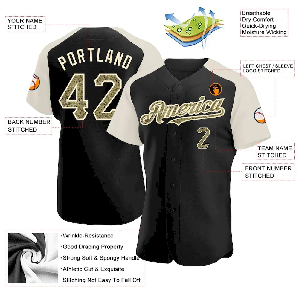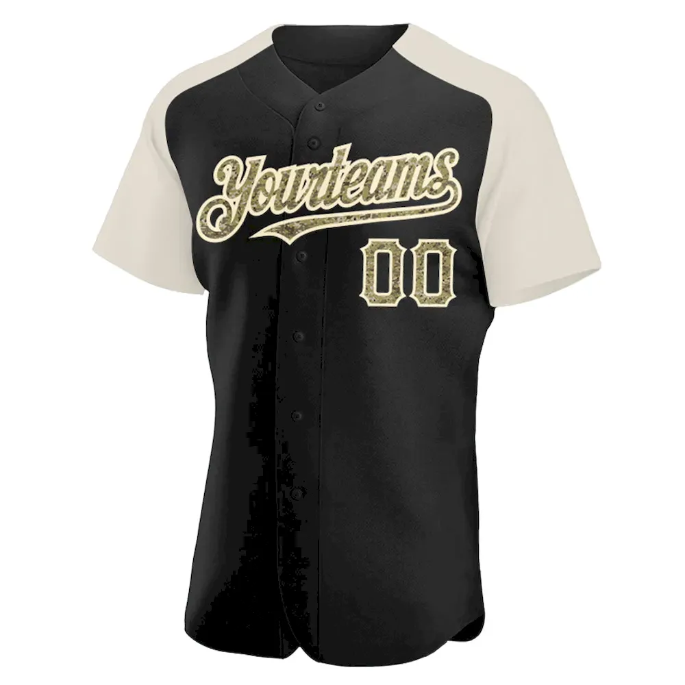 Custom Black Camo-Cream Authentic Raglan Sleeves Baseball Jersey