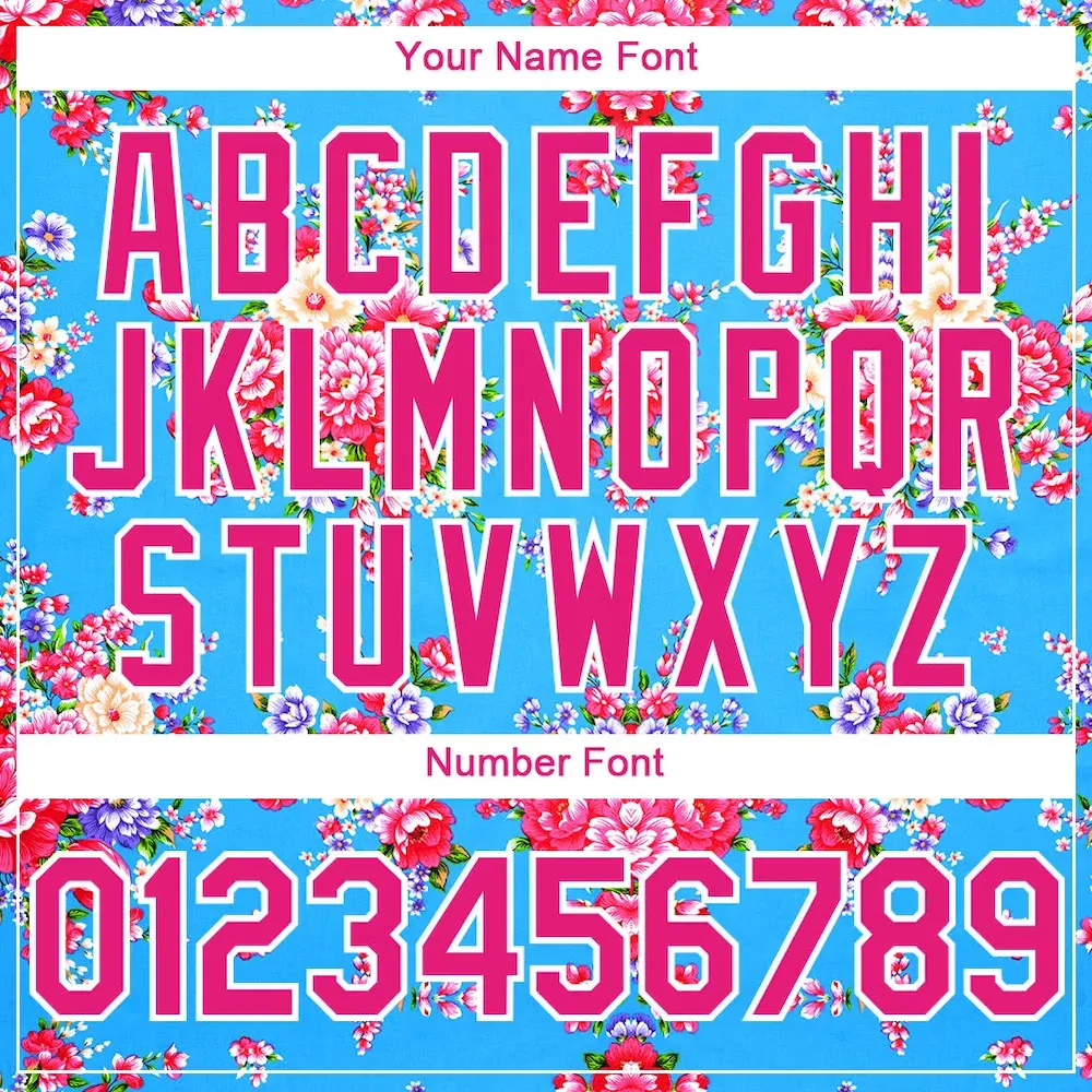Custom Electric Blue Hot Pink-White 3D Pattern Design Northeast China Big Flower Authentic Baseball Jersey
