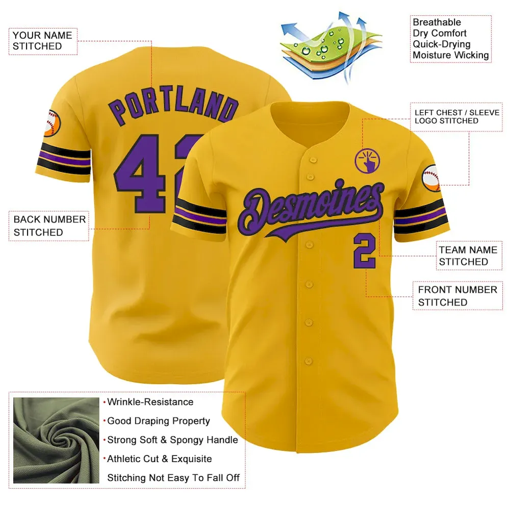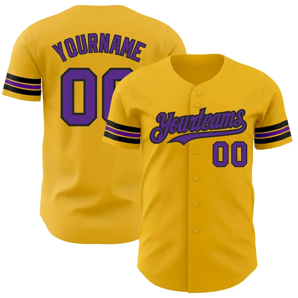 Custom Gold Purple-Black Authentic Baseball Jersey