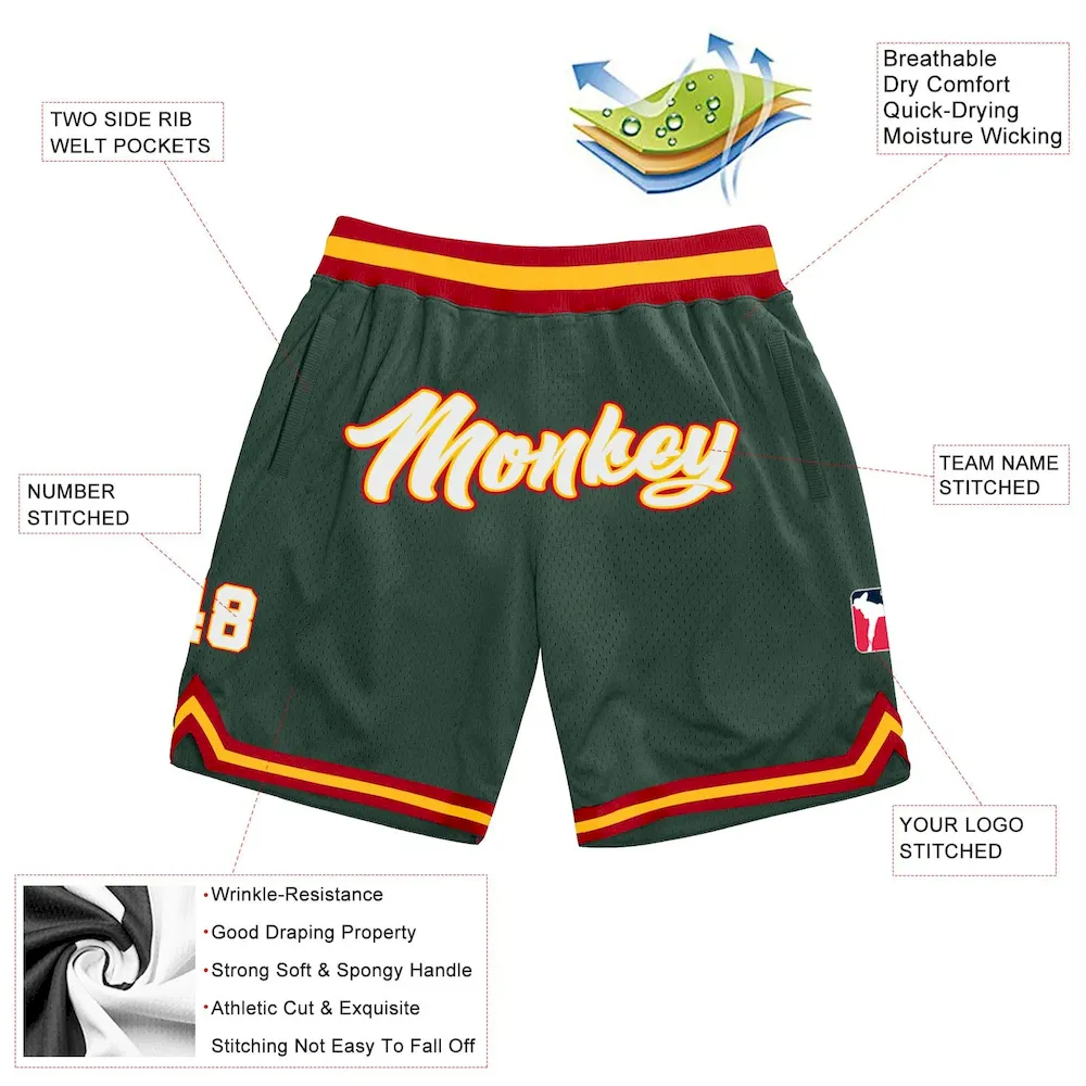 Custom Hunter Green White-Red Authentic Throwback Basketball Shorts