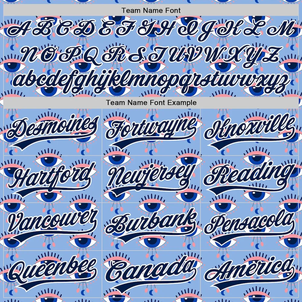 Custom Light Blue Navy-White 3D Pattern Design Evil Eyes Authentic Baseball Jersey