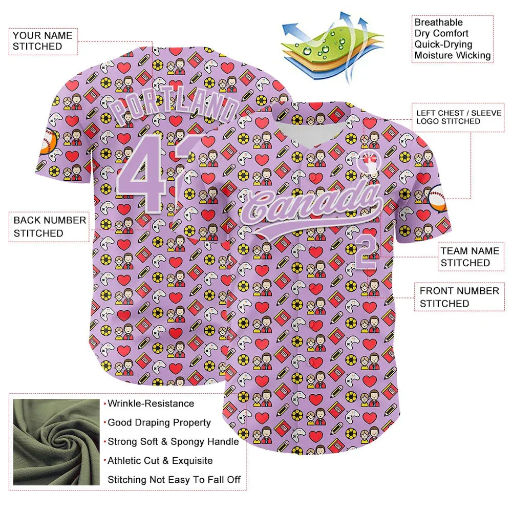 Custom Light Purple White 3D Pattern Design Father’s Day Family Love Authentic Baseball Jersey