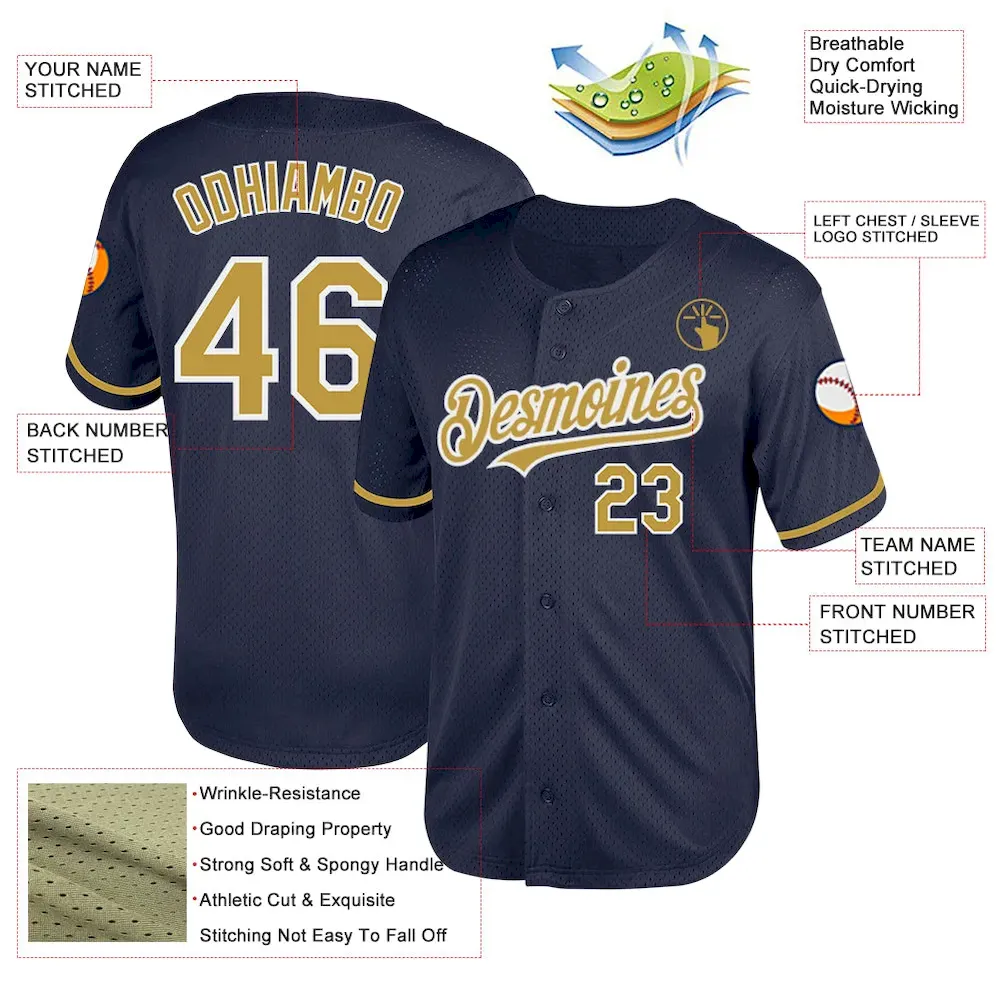 Custom Navy Old Gold-White Mesh Authentic Throwback Baseball Jersey