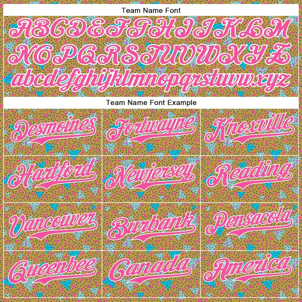 Custom Old Gold Pink-White 3D Pattern Design Geometric Shape Authentic Baseball Jersey
