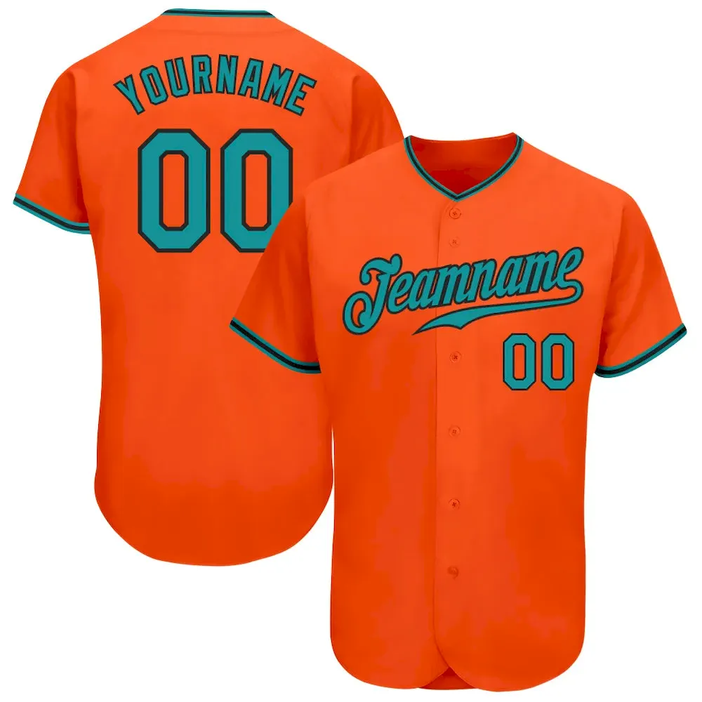 Custom Orange Teal-Black Authentic Baseball Jersey