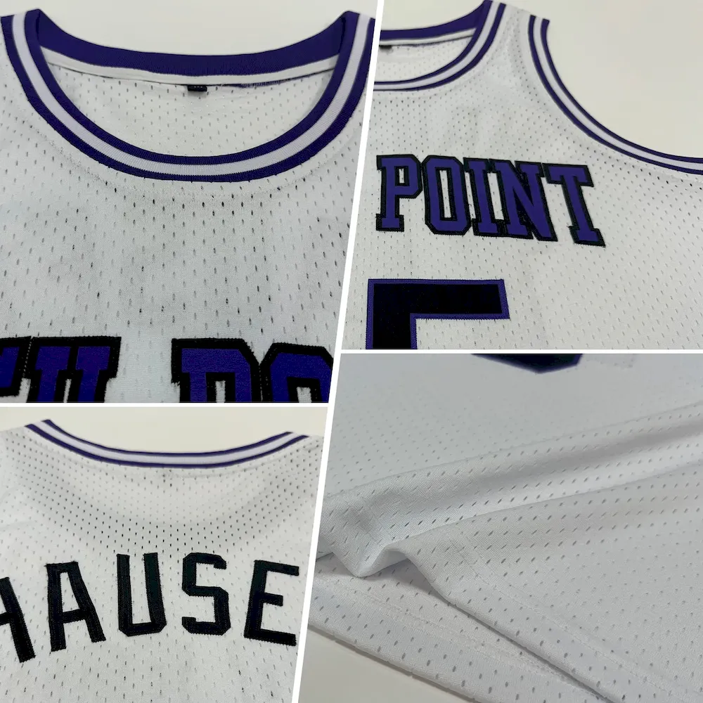 Custom White Black-Purple Authentic Throwback Basketball Jersey